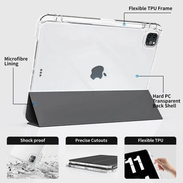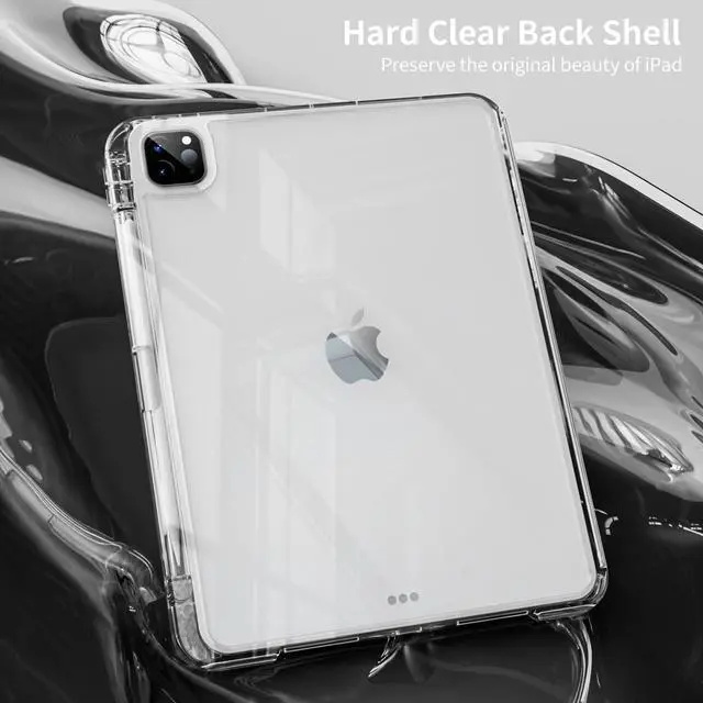 ^^ Full Protection: The transparent hard-shell back cover protects your iPad from shocks, drops, and impacts. The surface is soft and silky, providing a comfortable touch to the skin. You can clearly see the iPad logo through the back cover, while it showcases the original beauty of your iPad.