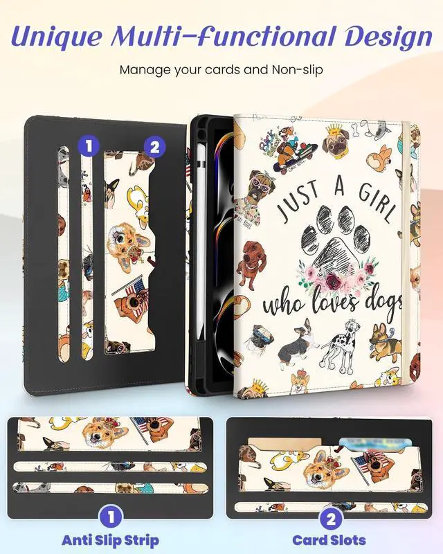 Multi-Functional Design: This for iPad Pro 11 case M4 2024 5th Generation features an elasticized cord strap, which ensures that your tablet closes securely, provides slip or drop protection. It also has two card slots designed to hold your bank cards business cards and other cards