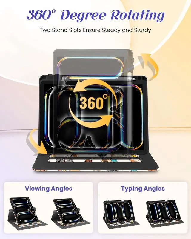 Rotating Stand: This for iPad Pro 11 inch case M4 2024 with an functional rotating stand design, supporting your devices to switch between landscape and portrait orientations. While 2 anti-slip strip design allow for multiple horizontal stand angles for comfortable viewing or typing ^^