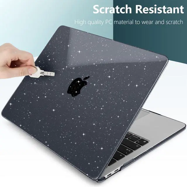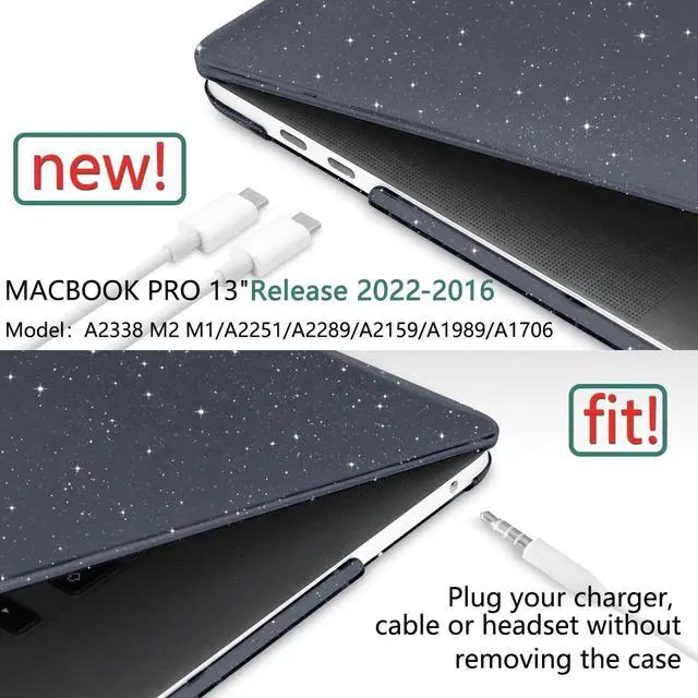 TWOLSKOO for MacBook Pro 13 inch Case 2023-2016 A2338 M2 M1 A2251 A2289 A2159 A1989 A1708 A1706, Glitter Sparkly Plastic Hard Shell with Keyboard Cover & Type C Adapter 2 Pack & Camera Cover, Black
