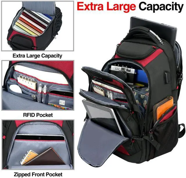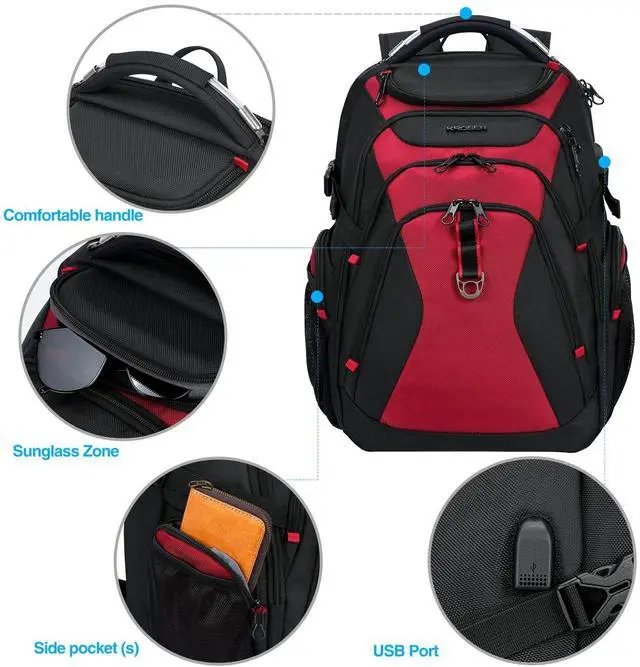 MULTI-FUNCTIONAL COMPARTMENT: Our large travel backpack with separated compartments and pockets which can provide roomy space for your computer, iPad, power bank, A4 files, wallet, cards, clothes and more your items. A zippered pocket and a mesh one at each side can hold your umbrella, water bottle, etc. A sunglass hard shell zone is designed on the top which is convenient and safe for you to put your sunglass, cell phone etc ^^