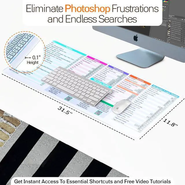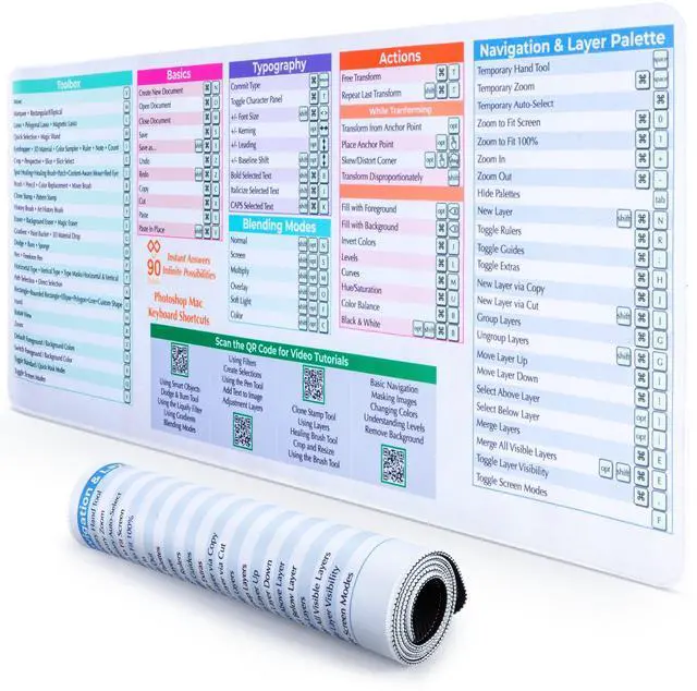 Even under different lighting, you'll find the right tool for the job instantly. ^^ Precision Meets Comfort - This large mousepad with Photoshop cheat sheet offers the perfect blend of functionality and feel. The smooth, braided surface provides precise mouse control, while the non-slip neoprene backing keeps it securely in place. ^^ Level Up Your Photoshop Game - Whether you're a seasoned designer, a budding photographer, or just starting out learning Photoshop, this short cut keyboard pad is here to level up your game. Master shortcuts and edit like a pro starting today.