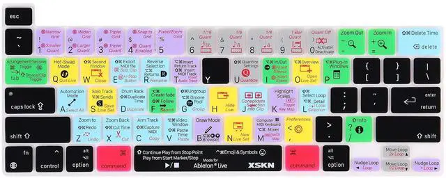 skin/protector-Suitable device: New MacBook Pro 16 inch A2141 and New MacBook Pro 13.3 inch A2251/A2289/A2338 M1 Keyboard US version-Product material: silicone- Ableton Live Shortcut design (English), QWERTY character layout-Upper side adopted rubber coating, gives you a comfortable soft touch feeling and protect the keyboard cover from losing color-Lower side is shiny surface, make the keyboard cover fit perfectly on your keyboard without any sticker/glueKnow your keyboard version: Model