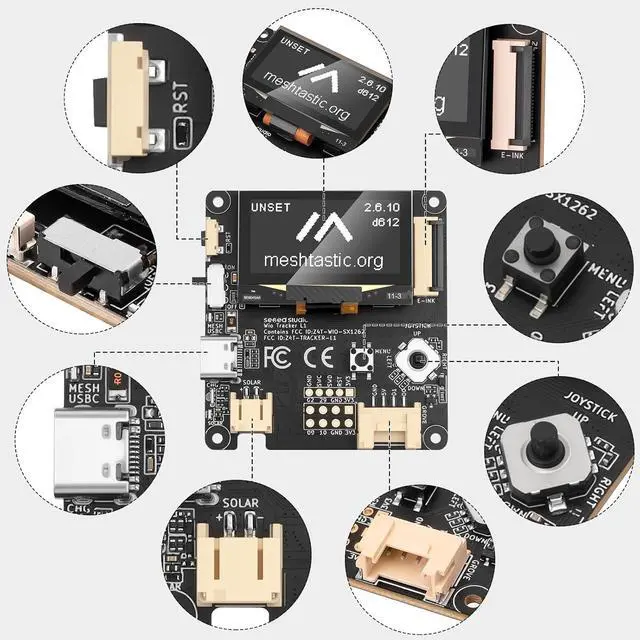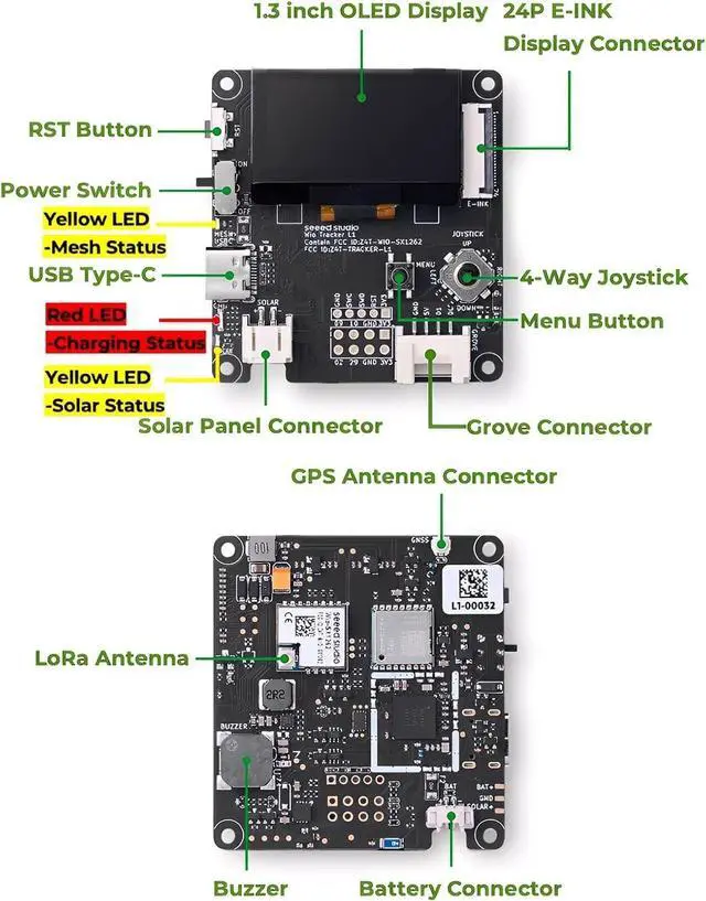 ^^ Real-time Monitoring: Featuring a vibrant 1.3 -inch OLED display, the Wio Tracker L1 offers enhanced visual feedback for system monitoring and user interactions. Track vital data and receive live updates with ease, making it an excellent tool for developers and hobbyists alike.