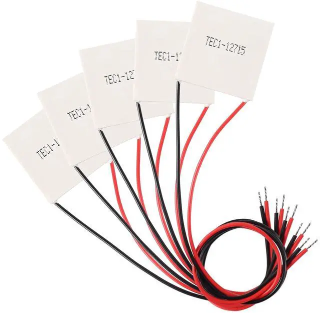 Device characteristics: red line is positive, black line is negative (there is a literal surface for the cooling surface, no literal surface is the heat dissipation surface)Package include: 5 x TEC1-12715 heatsink thermoelectric cooler module