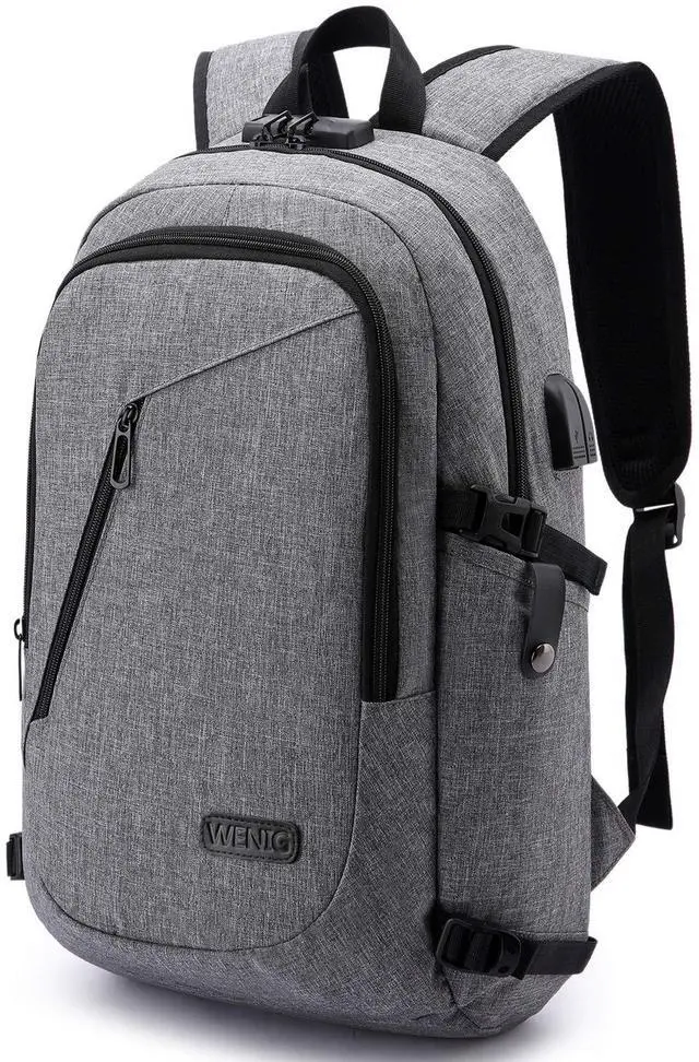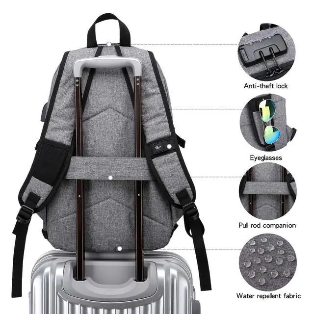 Travel laptop backpack: 17.7 x 11.8 x 7.4 Inch, perfect to throw under your seat on an airplane when you are traveling or on business trip. Suitable for commuting or carry-on, can be easily stored. Good choose for a business laptop backpack, work backpack, office work bag for men and women. ^^ USB CHARGING PORT DESIGN -The usb charging backpack with built in USB charger outside and built in charging cable inside, this usb backpack offers you a more convenient way to charge your phone while walking. Please noted that this backpack doesn't include the power bank itself, usb charging port only offers an easy access to charge. ^^ COMFORTABLE/ DURABLE -This mens travel backpack is made of water resistant and durable Oxford cloth with metal zippers. Comfortable wide breathable mesh shoulder straps with plentiful sponge pad help relieve the stress from your shoulder. Both sides of the shoulder strap with pocket design, can hang sunglasses and other small pendants. This bags for men Also computer backpack for women.
