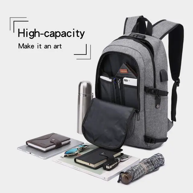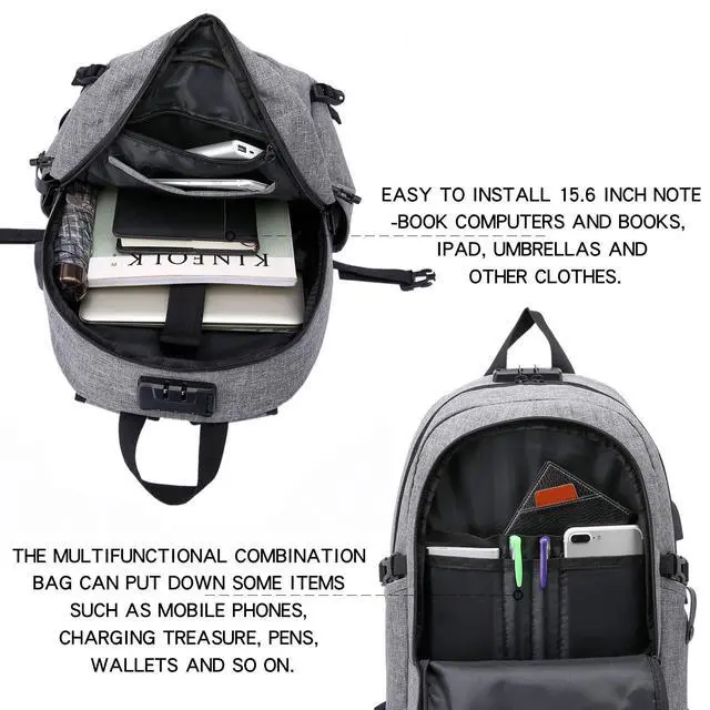 ANTI-THEFT BACKPACK - This antitheft computer Backpack design with a password lock (Note: Please do not set the password before you read the instruction) and double metal zippers, protects wallet and other items inside from thief and offers a private space. ^^ MULTIPLE POCKETS /LARGE CAPACITY - Business laptop backpack has 3 MAIN pockets & 9 INNER small pockets & 2 SIDE pockets & 1 BACK pocket, provides a separated space for your Laptop, iPhone, iPad, keys, wallet, books, clothes, bottle and more. Easy find what you want. ^^ MULTIPURPOSE/SIZE - Size of