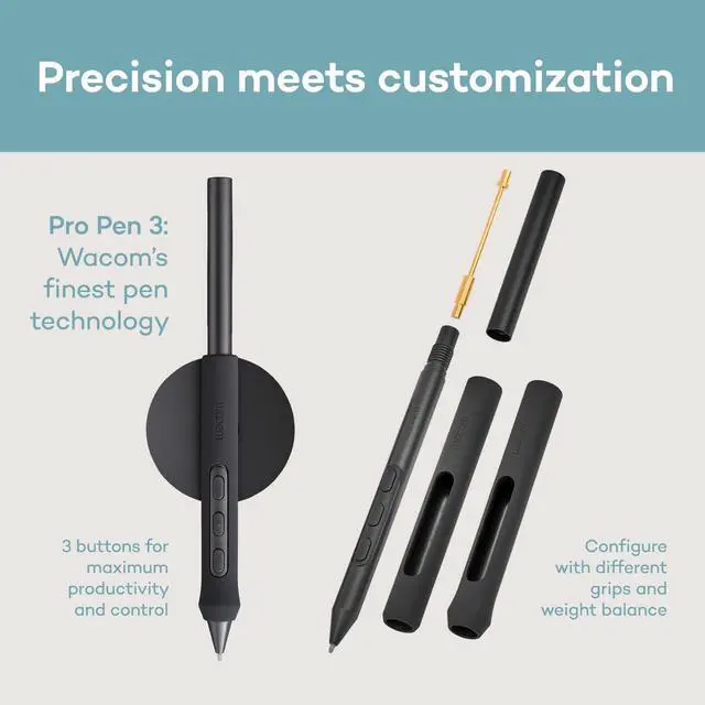 WACOMS BEST PEN TECHNOLOGY: Pro Pen 3 offers amazing precision, 8192 pressure levels, tilt support & lag-free tracking for smooth, precise strokes; choose slim, straight or flared grip, adjust balance & button layout for precision and comfort ^^