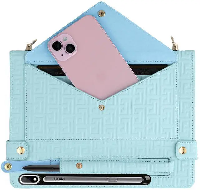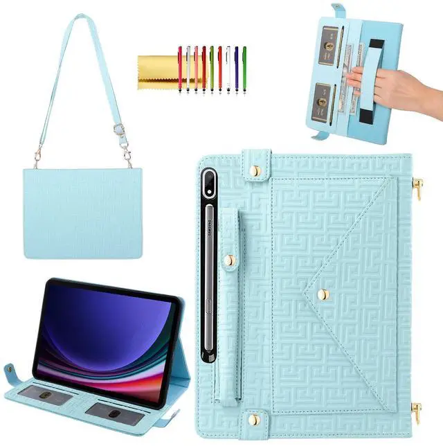 Handbag Case for Samsung Galaxy Tab S10 FE/S9 FE 10.9"/S7/S8/S9 11", Techcircle Elegant Crossbody Folio Stand Wallet Case with Pencil Holder, Card Slots, Hand Strap, Shoulder Strap, Baby Blue