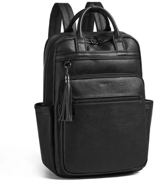 Shrrie Laptop Backpack for Women 15.6 inch Travel Leather Backpack Purse Work Computer Backpacks for Business College Black