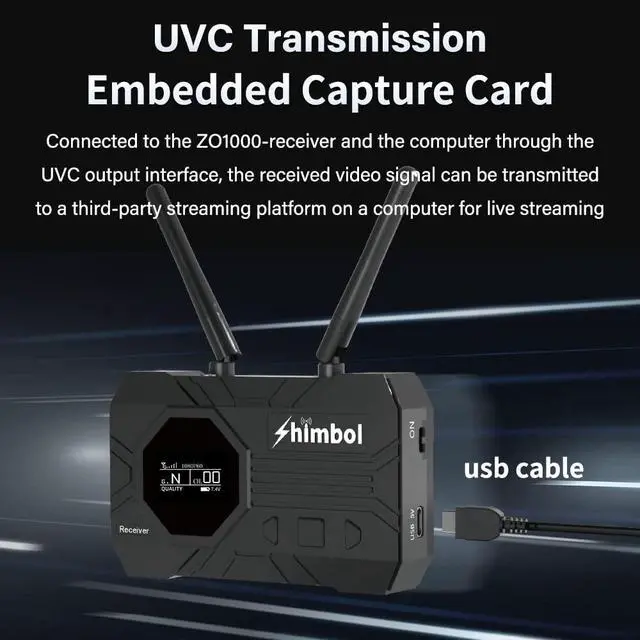 It can work with any mainstream camera, monitor, and switcher. Transmit to your iPhone or iPad using the Shimbol app. Power the transmitter and receiver units using a NP-F (L-Series type) battery or via the USB-C port ^^ Wide application scenarios- ZO1000 is widely used in independent film production, live streaming, sports events, educational recording, weddings, advertising, corporate events and more. ^^ Package Include- Transmitter *1 Receiver*1 Antenna *5 User Manaul*1 Type C cable*1