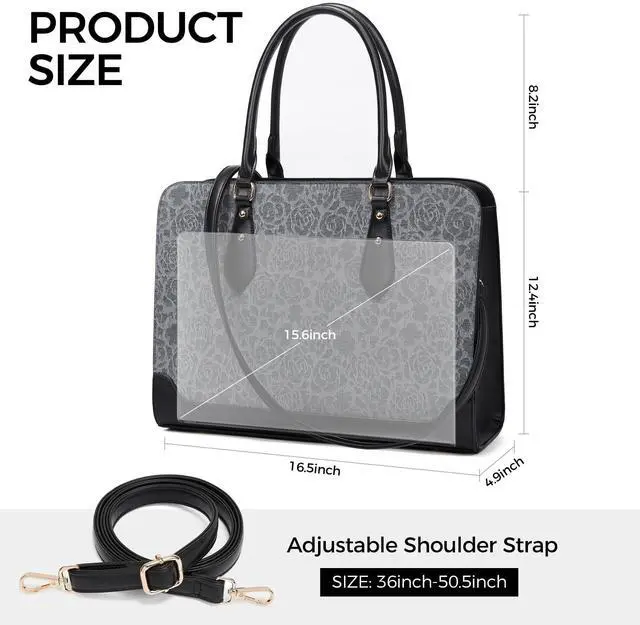 Handle drop: 8.2", weight: 2.5LB, finished with a secure zip-top closure. With a removable shoulder strap varied from 3 inches to maximum 49 inches and adjustable handles, You be carried in several ways as a ladies briefcase, teacher tote bag, computer bag for women or women crossbody work bag as well, convenient and comfortable ^^ Versatile Computer Bag for