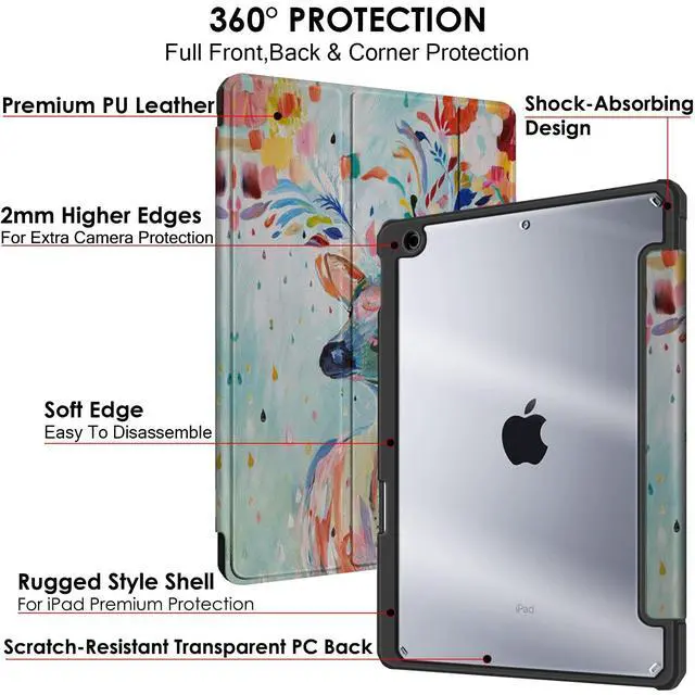 Key FeaturesExclusively designed for all iPad 10.2 9th & 8th & 7th Gen(2021/2020/2019)Smart Auto Sleep/WakePencil Holder Case with Soft Silicone Back for Extra ProtectionMulti-Angle Viewing/Typing StandEasy to InstallCompatibilityAll iPad 10.2 9th & 8th & 7th Gen(2021/2020/2019) ModelsiPad 10.2 2021 (9th Gen) WiFi (A2602 MK2K3HN/A, MK2L3HN/A, MK2N3HN/A, MK2P3HN/A, MK2K3LL/A, MK2L3LL/A, MK2N3LL/A, MK2P3LL/A)WiFi+Cellular (A2604, A2603, A2605 MK663HN/A, MK673HN/A, MK6A3HN/A, MK693HN/A, MK663LL/A, MK673LL/A, MK6A3LL/A, MK693LL/A)iPad 10.2 2020 (8th Gen) WiFi (A2270 MYLC2HN/A, MYL92HN/A, MYLA2HN/A, MYLF2HN/A, MYLD2HN/A, MYLE2HN/A, MYLC2LL/A, MYL92LL/A, MYLA2LL/A, MYLF2LL/A, MYLD2LL/A, MYLE2LL/A)WiFi+Cellular (A2428, A2429, A2430 MYN62HN/A, MYN32HN/A, MYN52HN/A, MYN92HN/A, MYN72HN/A, MYN82HN/A, MYN62LL/A, MYN32LL/A, MYN52LL/A, MYN92LL/A, MYN72LL/A, MYN82LL/A)iPad 10.2 2019 (7th Gen) WiFi (A2197 MW762HN/A, MW742HN/A, MW752HN/A, MW792HN/A, MW772HN/A, MW782HN/A, MW762LL/A, MW742LL/A, MW752LL/A, MW792LL/A, MW772LL/A, MW782LL/A)WiFi+Cellular (A2200, A2198 MW6Y2HN/A, MW6W2HN/A, MW6X2HN/A, MW722HN/A, MW702HN/A, MW712HN/A, MW6Y2LL/A, MW6W2LL/A, MW6X2LL/A, MW722LL/A, MW702LL/A, MW712LL/A)DuraSafe Cases - Durability & Safety of your device in Style.