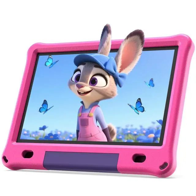 ^^ [High Capacity Battery & HD Touchscreen] - 6000mAh battery and low power CPU allows up to 8 hours of mixed use. 1280x800 IPS HD touchscreen provides the ultimate visual experience when video chatting, watching movies, playing games and reading eBooks. ^^ [10"Tablet] - Tablet for aged 6-12 comes with a EVA case that covers the screen and effectively protects against occasional drops and bumps. The rotatable stand on the back of the case is easy to support while watching videos, freeing up your hands.