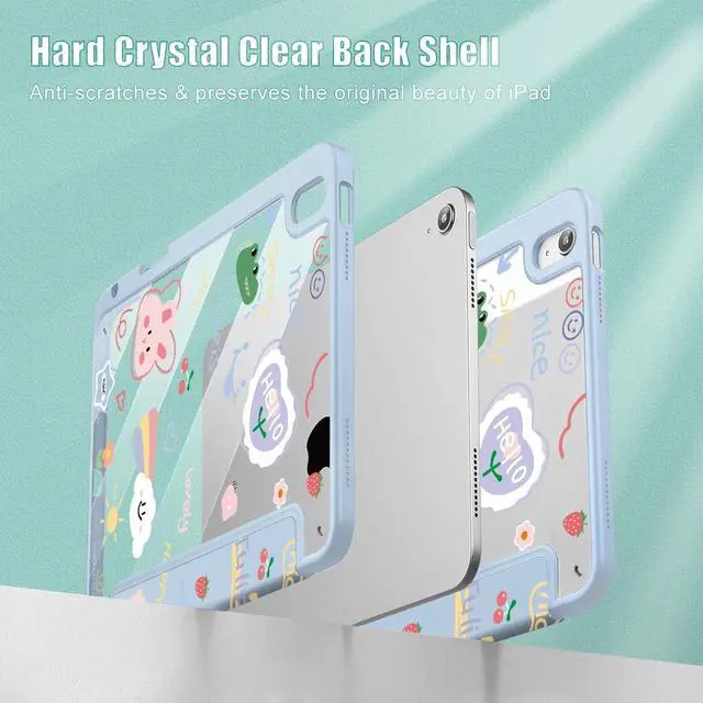 May Chen for iPad (A16) 11th Generation Case 11 Inch 2025, iPad 10th Gen Case 2022 10.9 inch, Built-in Pencil Holder with Shockproof Clear Transparent Back Shell Auto Wake/Sleep, Cartoon Stick Figure