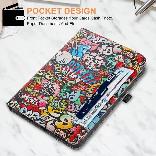 Features: 1. Front Pocket Design, Can Store Personal Items Such As Bank Cards, Cash, Etc. 2. Multi-Angle Support, You Can Adjust The Appropriate Angle According To Personal Needs, And The Anti-Slip Strip Prevents The Tablet From Slipping During Operation. 3.