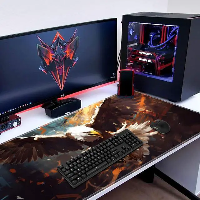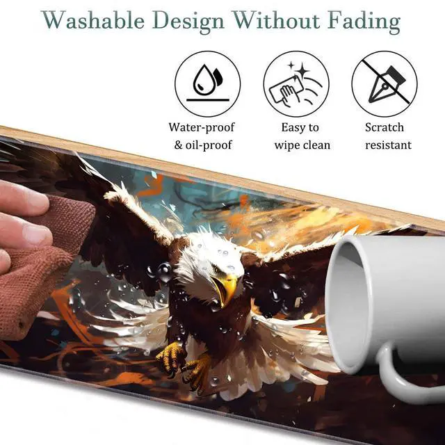 Extended Gaming Mouse Pad 31.5" x 11.8", with Edge Stitching, Non-Slip Rubber Base Keyboard Pad, Suitable for Work, Game, Office, Home and Coasters, Eagle