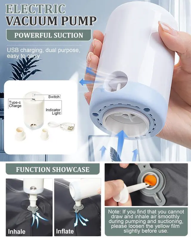 Space Saving Vacuum Compression: Utilize our advanced vacuum compression technology to maximize your packaging efficiency. The design of the one-way valve allows you to use our electric vacuum pump for rapid compression or manually press to release air. Up to 45 liters of clothing can be accommodated, enjoying optimized space where you no longer need to compromise on carrying or anything else. ^^ Multi Functional and