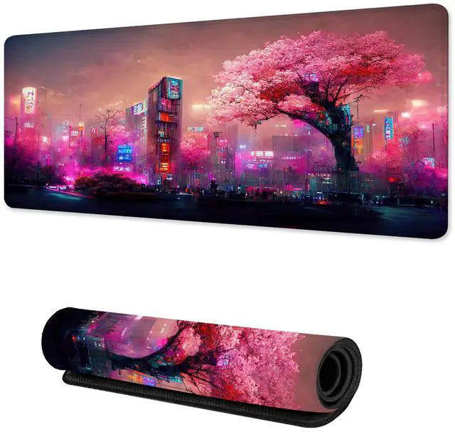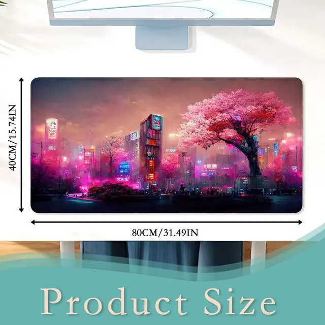 TUBAMQ Japanese Night Gaming Mouse Pad,Cherry Blossoms Mouse Pad Non-Slip Rubber Base Desk Mat, Large Extended Mousepad Protector for Home Office 31.5 x 15.7 in