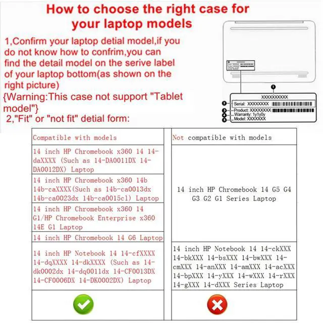 It is especially designed for HP Chromebook x360 14 14-daXXXX 14-DA0011DX 14-DA0012DX/Chromebook x360 14b 14b-caXXXX 14b-ca0013dx 14b-ca0023dx/Chromebook x360 14 G1/Chromebook Enterprise x360 14E G1/Chromebook 14 G6/Chromebook 14 14a-neXXXX 14a-ne0047nr/Notebook 14 14-cfXXXX 14-dqXXXX 14-dkXXXX 14-dk0002dx 14-dq0011dx 14-CF0013DX, Case for Dell Latitude 3410/Latitude 3420/Latitude 3430, Case for ASUS Chromebook CM14 CM1402C/Chromebook CM14 Flip CM1402F 14 Inch Laptop. ^^ This protective cover is made of the high-quality PU leather, characterized by the beautiful appearance and fine hand feeling; the inner-layer soft cashmere can better protect the laptop. ^^ Unique design with two elastic rubber bands could solve the problem of loose cover effectively in the process of using laptop (This case not support "Tablet model").