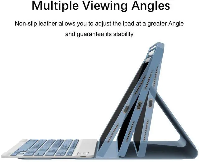 It even enters into sleep mode automatically if not in use for 15 minutes. Just Press any key to wake up. Mechanical scissors keyboard, quick rebound, press smoothly. ^^ Heat Dissipation&Super Non-slip- Honeycomb grid design on the back of the tablet case, prevent the iPad from overheating and extend its service life by more than 30%. The durable PU leather cover comes with a safety magnetic buckle to protect your iPad from all aspects, and non-slip rubber lining provide full protection for your tablet with strong anti-slip performance, providing more stable support for your iPad from multiple angles.