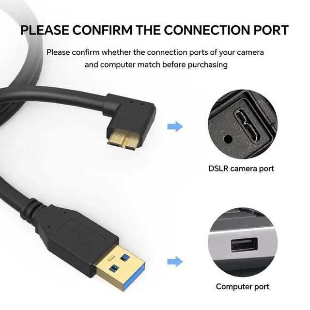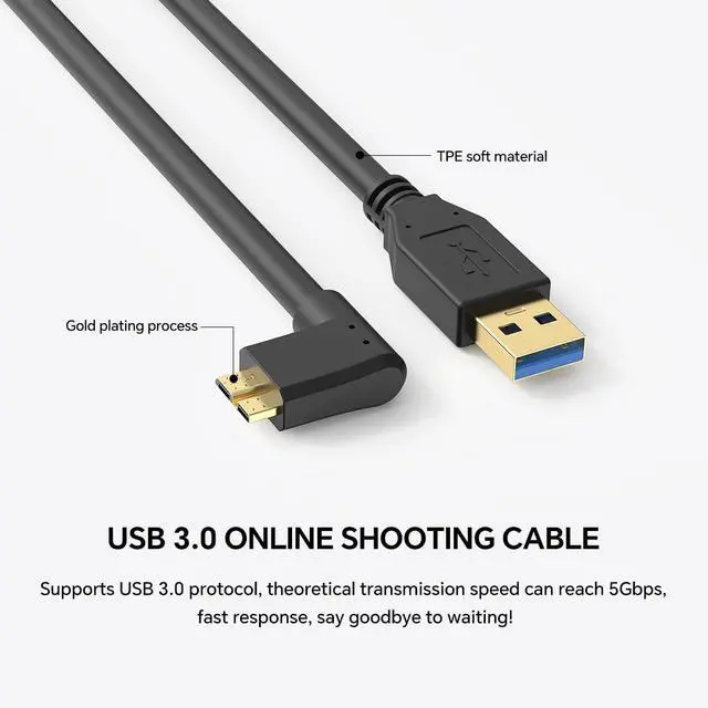 DATA TRANSFER: Experience high-speed 5Gbps data transfer with this USB 3.0 cable, designed for seamless live streaming, professional photo/video capture, and quick access to external hard drives. Suitable for photographers and videographers, it offers minimal latency and reliable performance, whether you're shooting in the studio or streaming live events.
