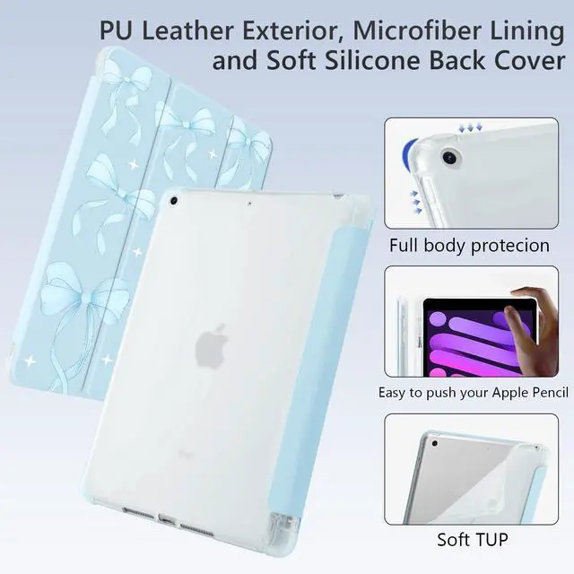 Please Note: It doesn't compatible with other tablet models, and the pen holder of this model is located on the right side of the iPad ^^ Well made with PU exterior, microfiber lining and soft silicone back cover, offers full body protection from drops and scratches ^^ Built-in Apple Pencil holder, grab your Apple Pencil effortlessly whenever you want, keep the apple pencil as safe as your iPad all the time ^^ Cover has flip capability to transform the case into a viewing stand and typing stand. Available in a variety of bright colors and unique pattern ^^ Built-in magnetic strip provides auto sleep / wake function. Precise cutout and design allow easy access to all ports, sensors, speakers, cameras