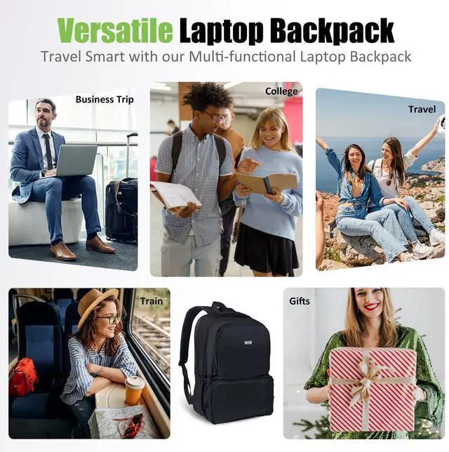 COMPREHENSIVE PROTECTION - Our backpack features a dedicated laptop compartment with shock-absorbing foam padding and adjustable straps, ensuring optimal protection for laptops up to 17 inches. Travel with confidence, knowing your devices are safeguarded. ^^ VERSATILE COMPARTMENT DESIGN - Measuring 12.99 x 7.87 x 18.90 inches (33 x 20 x 48cm), this backpack offers a capacious 30L capacity. It features a spacious main compartment designed for your travel essentials and a front pocket equipped with multiple sections to organize your office supplies efficiently. Perfect for both business trips and daily commutes. ^^ COMFORTABLE AND ADJUSTABLE - The wide, padded shoulder straps provide breathability and comfort, with adjustable options for a personalized fit.