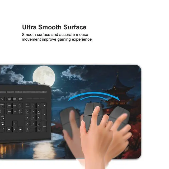 • Extended Mouse Pad Size: This large mouse pad is 35.4"x15.7" and is 3 mm thick. The desk mat is large enough to have a mouse, gaming keyboard, and other desk items. The 3mm thick not only reduces noise, but also ensures a more comfortable experience for your hands, it very suitable for offices and games, while maintaining protecting your desk all the time