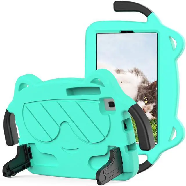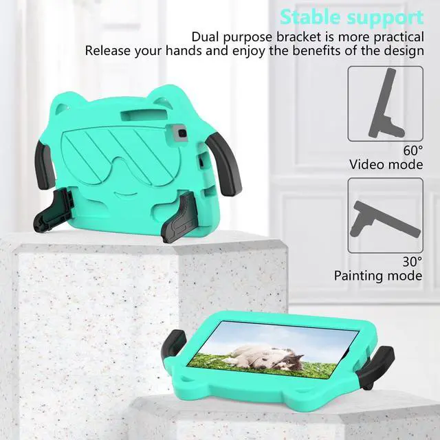Features: Shock ProtectionMade of soft kid-safe EVA foam and sturdy PC (handle and kickstand) to protect your tablet from daily bumps and scrapes. Side Handle2 solid handles are designed for an easy and comfortable grip for children, and convenient for carrying indoors and outdoors. Stable StandBuilt-in 2 folded bases to prop your tablet up on the desk for hands-free horizontal viewing or typing.