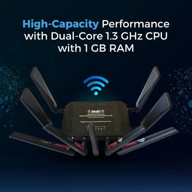 High-Speed 5G and 4G LTE Connectivity VPN Router with toll free support 1-888-499-0123 ^^ Business-Class Features for Seamless Networking Includes IP Pass-Through, Failover Support, Band Lock, VPN Compatibility, and Zerotier Certified connectivity for enterprise-grade performance. ^^ Extended Wi-Fi 6 Coverage with Built-In Amplification Features full Wi-Fi 6 technology and internal signal amplification to deliver stronger wireless range and faster speeds. ^^ Durable Rugged Metal Construction Designed with a full metal case and detachable antennas for long-lasting reliability and superior heat dissipation. ^^ Dual SIM Card Support with Auto Failover Dual SIM functionality allows automatic switching between SIM cards to maintain a continuous and reliable connection.