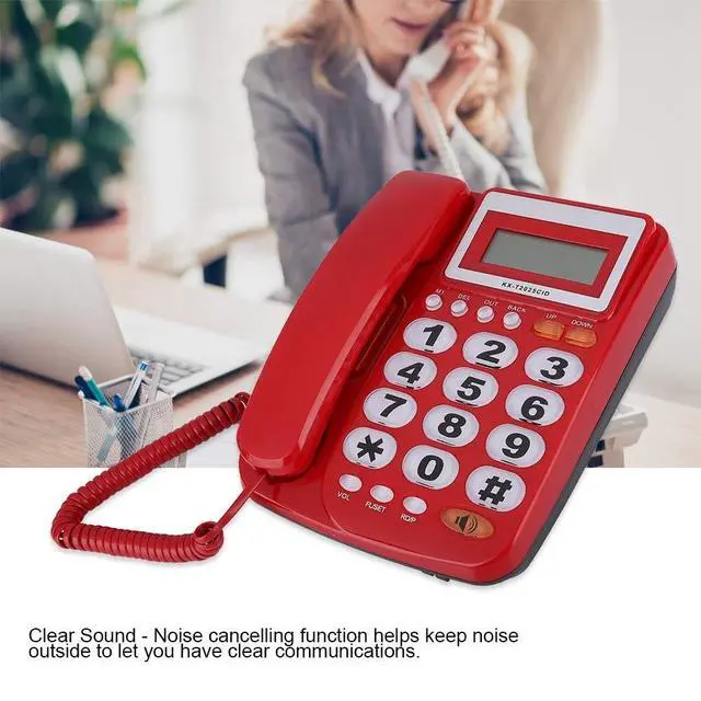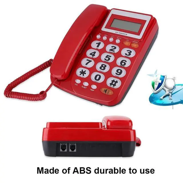 Features: 1. LCD Display LCD screen displays real time date, call time record, incoming call number, etc. 2. Clear Sound Noise cancelling function helps keep noise outside to let you have clear communications. 3. Extension Set Comes with dual port design. Supports extension set. 4. Large Buttons Adopting large buttons to let you see every number and letter clearly. 5. Made of ABS, to use.