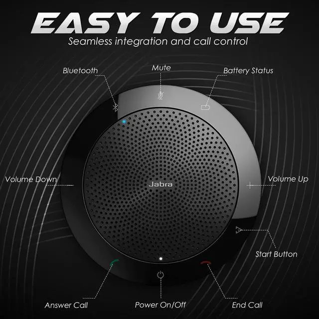 Optimized for Unified Communications ^^ Built-in USB Type-A cable & Bluetooth 3.0 Connectivity (NO USB Jabra Link 370 dongle included) ^^ Multi-Device Connectivity - Plug-and-Play, Portable Design - Echo Cancellation ^^ 360 Omnidirectional Microphone - Up to 15 Hours Wireless Talk Time ^^ Programmable Smart Button - 250 Hz to 14 kHz Frequency Range