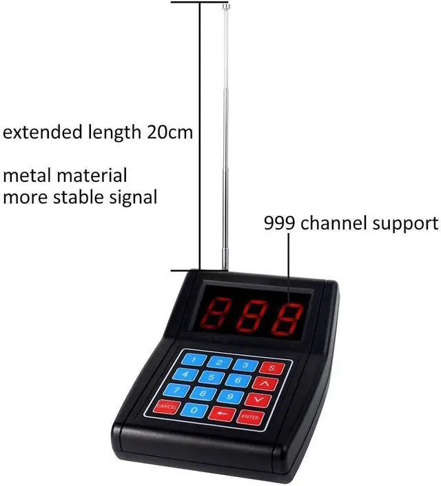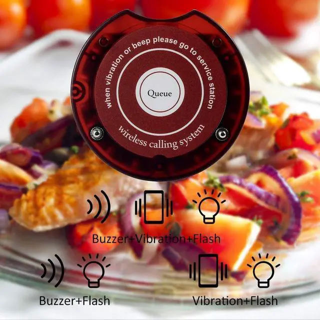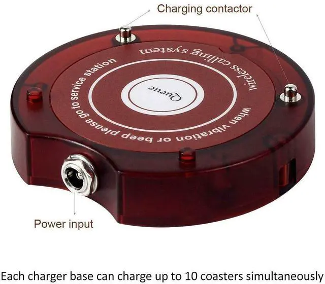 Long working distance; restaurant pager system working distance is about 984 ft in the open area ^^ Long service time; each restaurant buzzer pagers has a 3.7V 280mAh rechargeable battery; can be used for a day's work ^^ Charge anytime; restaurant buzzer starts to charge when it is placed in the charging base ^^ Long standby time; restaurant coaster pager standby time about 18-20h; avoid the trouble of frequent charging ^^ 3 prompt modes available; vibration & buzzer & vibration+buzzer (each mode is accompanied by the LED flashing); choosing the mode according to the environment; never missing calls