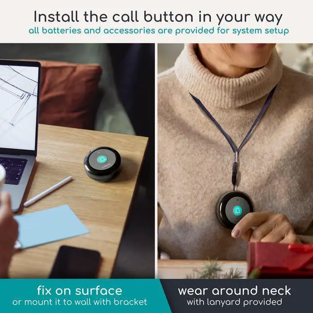 • FLEXIBLE FEATURE: Each wireless call button comes with a mounting bracket that allows individual to attach to wall or flat surface without permanently being fixed to a location. It provides the flexibility to carry around on the go.