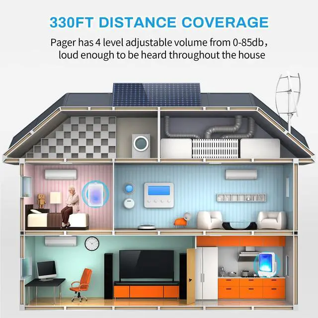 RELIABLE CAREGIVER ALERT SYSTEM: Ensure help is always there. With a 330t open-area operating range, it provides freedom for caregivers and residents, and is suitable for use in bedrooms, kitchens, or yards. ^^