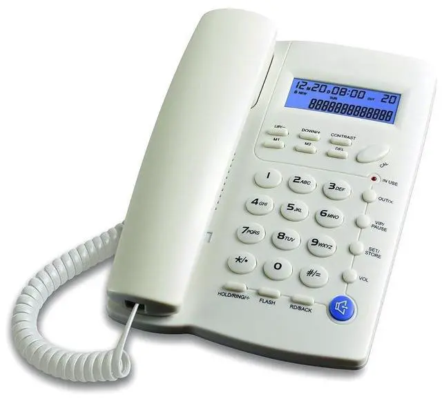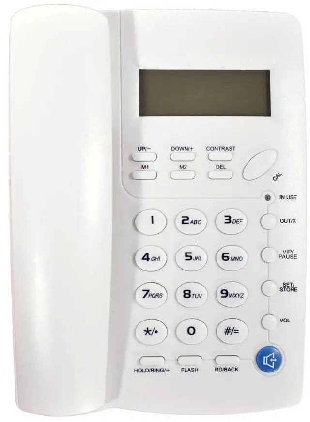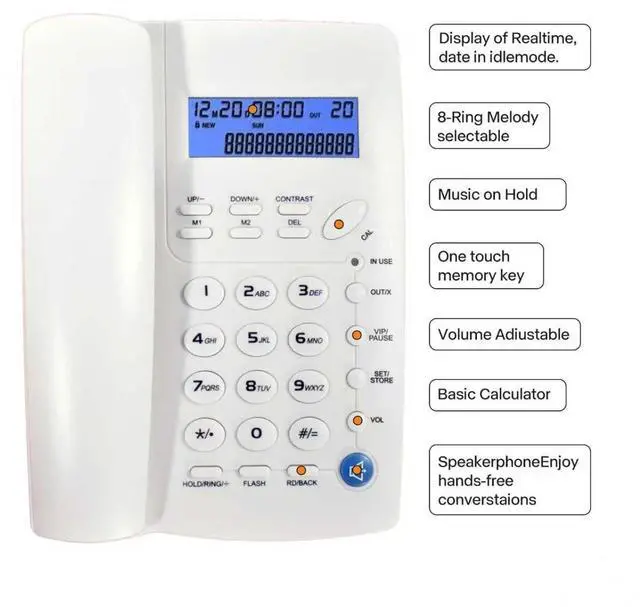 Easy to set up - Connect the phone to your RJ11 telephone jack by the phone line included in the parcel, still works if there is a power outage. Not Wall Mounted. ^^ Caller ID/Call waiting - Handset displays the number, time and date. 28 groups of incoming calls memory; 5 groups of outgoing calls memory; 2 groups 1-touch speed dial memory. ^^ Speakerphones button makes hands-free conversations easily. Music on hold. ^^ 5 levels of large display contrast adjustable; AAA battery provides back light for easier viewing in low light conditions.