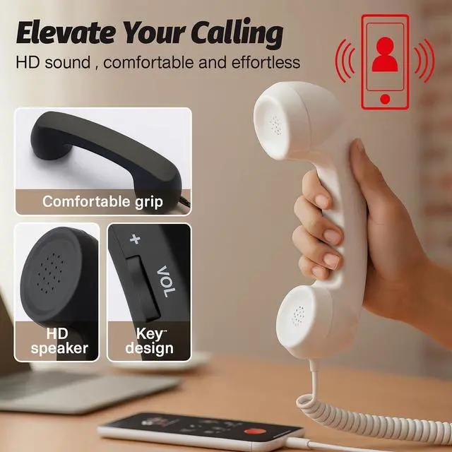 • Clear Calls & Easy Volume Control Retro Phone Handset USB C With High-Fidelity Speaker And Built-In Microphone Delivers Crisp, Smooth, And Noise-Reduced Calls. Convenient Side Volume Slider Lets You Adjust The Audio Level Instantly For Work, Meetings, Or Daily Chats