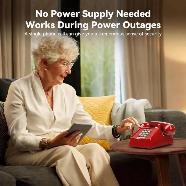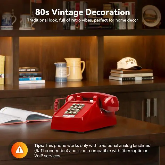 ^^ BACKUP EMERGENCY TELEPHONE: This analog phone can work well with different telephone system without External Power, just need plug the telephone line into line port, great as a Backup Emergancy Phone for power outages. ^^ VINTAGE DECORATIONThis traditional retro classic landline phone will be a great choice for home, cafe, school, restaurants, hospitals, retail stores and office, which makes a strong ambience of fashion nostalgia.