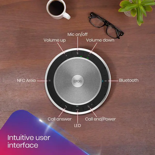 CONNECTIVITY: The EPOS EXPAND 30 Speakerphone bundle offers both USB-C and Bluetooth connectivity for ultimate convenience and flexibility in any setting.