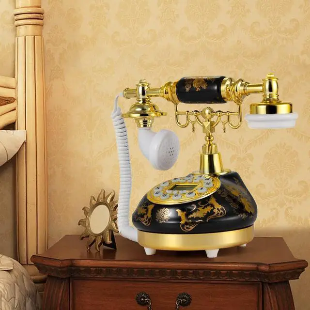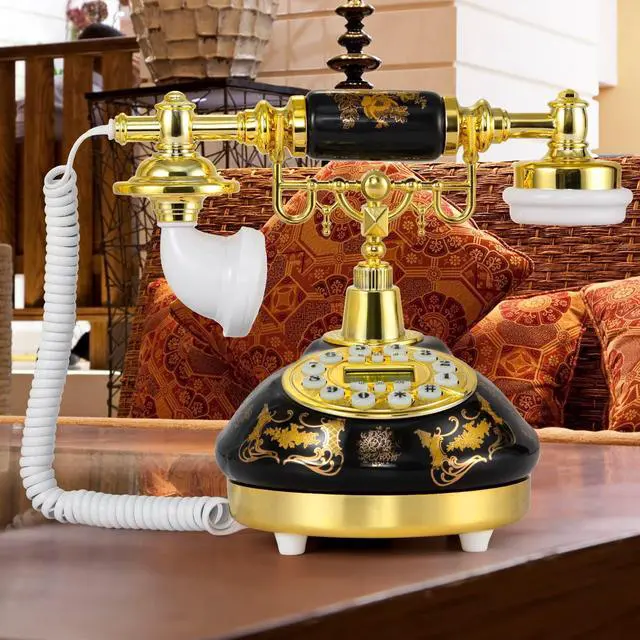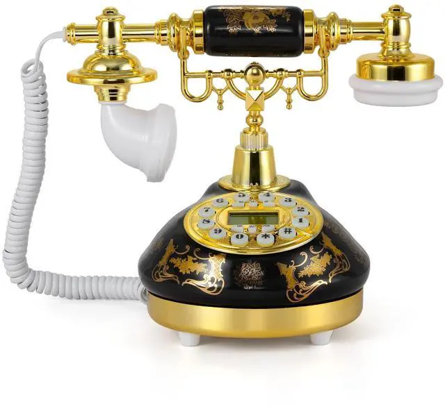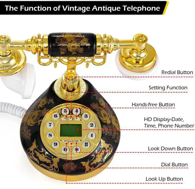 ^^ [Retro Style Dial Telephone]- Ceramic antique telephone with outstanding antique effect, the exterior with delicately patterned, black and gold makes the landline telephone feel more retro and advanced, which is a nice decoration and a collectible. ^^ [Automatic Detection Function]- Push-button antique telephone with an LCD display that multi-angle shows an electronic calendar, time and week; the old-fashioned landline telephone through FSK and DTMF to detect caller ID automatically. ^^ [Widely Applications]- Antique vintage phone for landline not only meets your need for daily calls, but also can be used as a decoration for living rooms, bedrooms, offices, star hotels, galleries, and coffee shops.
