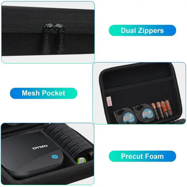 ^^ Full Range Protection: This dymo label maker carrying case holder is made of High-density Hard EVA material which makes the dymo label printer case waterproof and shockproof, combine with durable fabric and soft lining, the dymo letratag 200b bag provides all-round protection for your bdymo letratag printer.