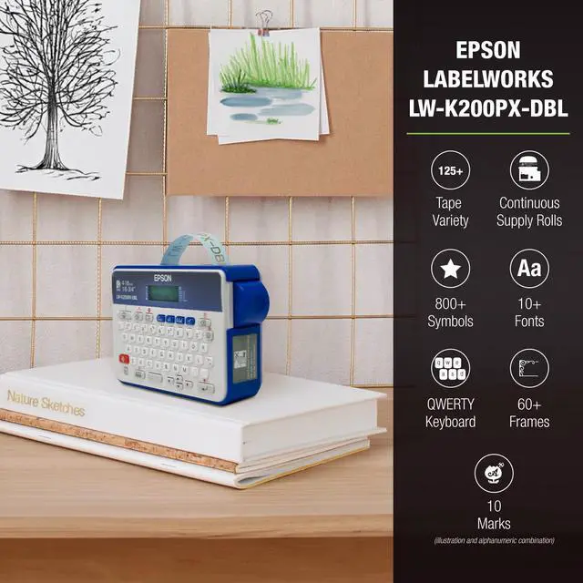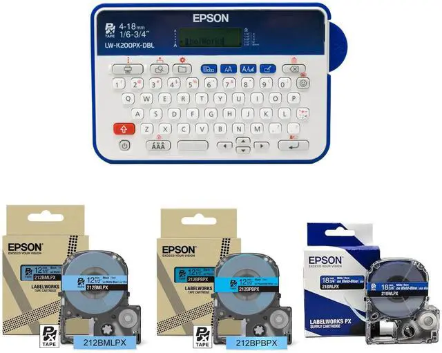 Craft effortlessly with the Epson Crafting Essential Bundle! This comprehensive set features the LW-K200PX-DBL Portable Label Maker with a Qwerty keyboard and three PET Tape Cartridges in Matte Blue, Pearl Blue, and White on Blue. The compact, user-friendly design makes on-the-go crafting a breeze. Customize labels with the included app for high-resolution prints. Elevate your projects with durable PET tapes, perfect for home, hobbies, and organizational tasks. Versatility meets style in this crafting essential bundle.