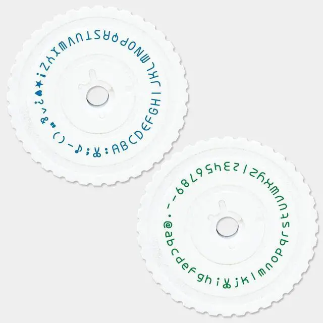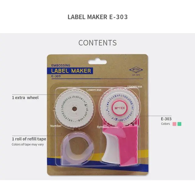 Creates high quality embossed adhesive labels ^^ Prints letters, numbers and emoticons. ^^ Ergonomically designed for ease of use and modern look ^^ Easy to use, portable, No need battery or electricity. ^^ Comes with 1 label maker, 1 pre-loaded tape and 2 wheels (Alphabet & Number & Emoticon)