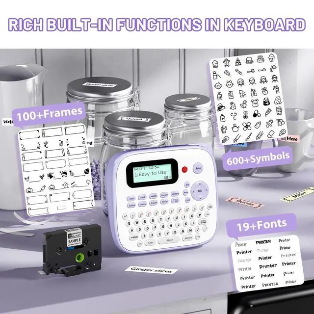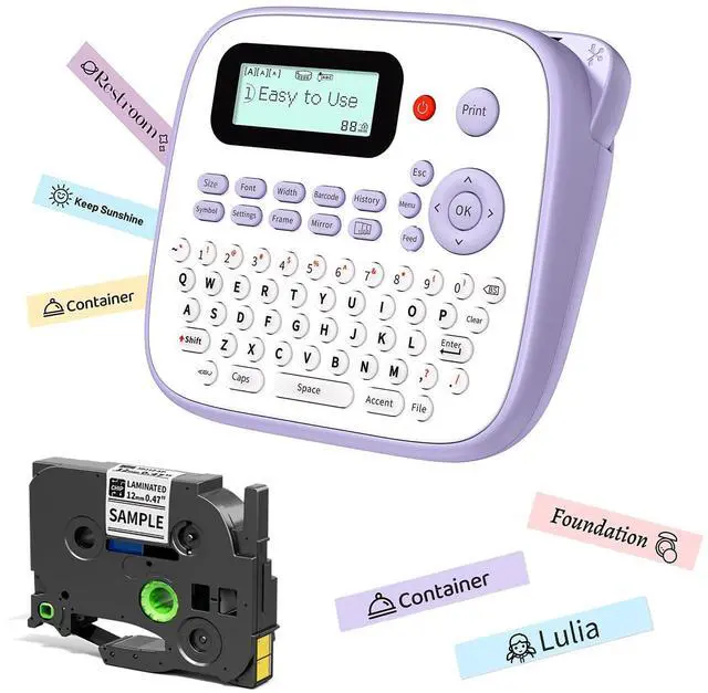 Fun Label Maker: Unique purple label maker machine labels waterproof appearance designed specifically for older kids to inspire organization interest. Simple and safe operation helps children develop classification and organization habits. Multiple cute symbols and fonts make label creation a fun family activity ^^ Essential Classroom Tool for