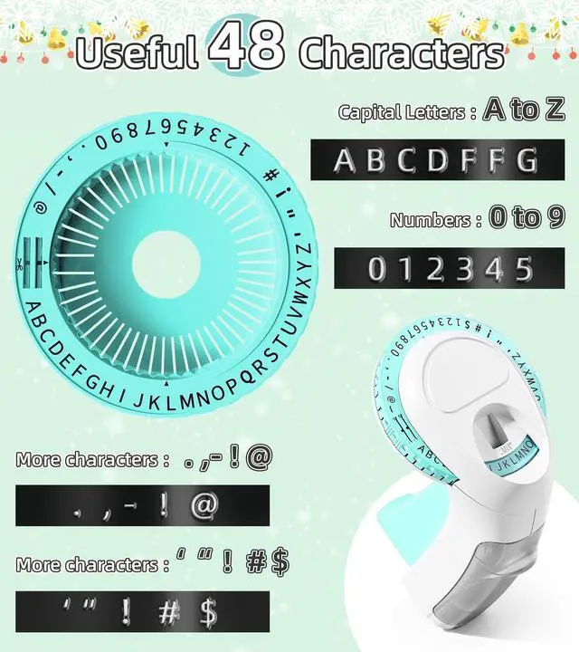 Characters: Complete embossing label maker kit includes A-Z letters, 0-9 numbers, and symbols (! # $., - / @). Ideal starter kit for beginners and DIY enthusiasts, Scrapbooking. No batteries, ink, or electricity needed - just turn dial and press handle. Perfect manual handheld embosser for all ages, weighing only 149g for ultimate portability ^^ Ergonomic Handheld