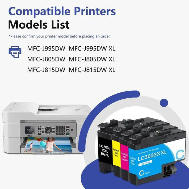 Printer Compatibility: lc3033bk c m y ink set replacement for Brother Printers MFC-J995DW MFC-J815DW MFC-J805DW MFC-J995DW XL MFC-J805DW XL MFC-J815DW XL ink cartridge ^^
