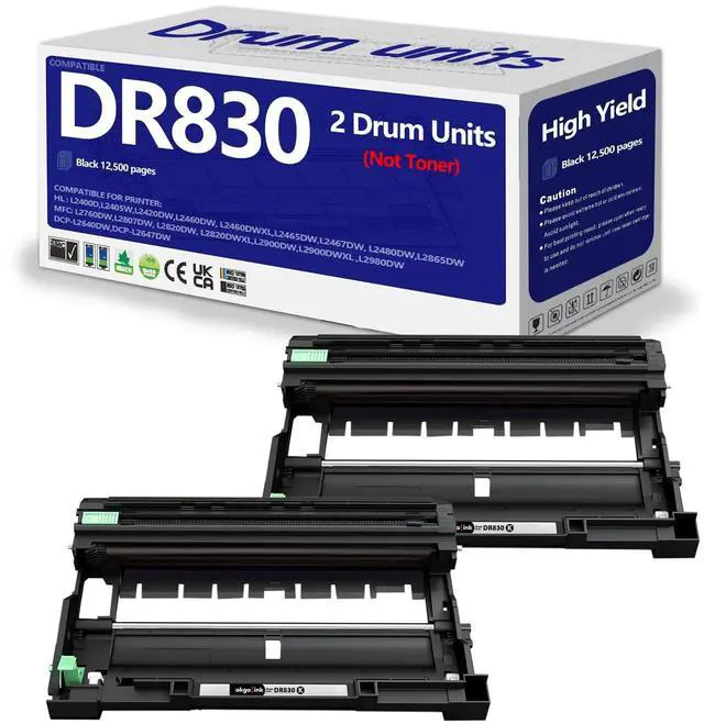 OKGO!INK DR830 Drum 2 Pack Compatible Replacement for Brother DR830xl DR-830 tn830 Drum Unit use with DCP-L2640DW HL-L2460DW HL-L2405W HL-L2480DW MFC-L2820DW MFC-L2807DW HL-L2400D HL-L2865DW Printer