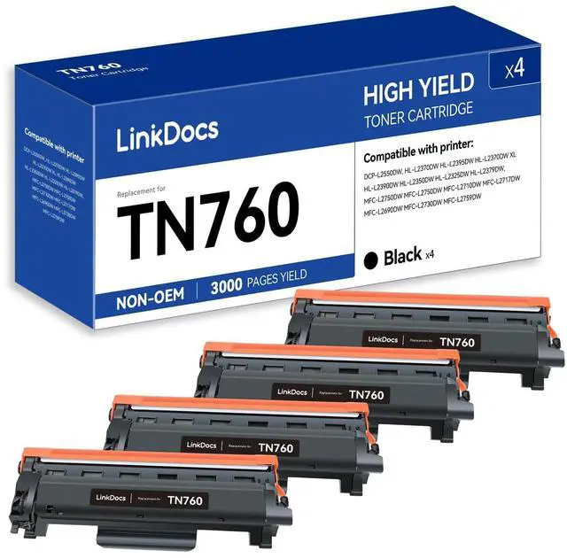 TN760 Superior Printing Quality: Equipped with the latest chips for enhanced compatibility, these toner cartridges deliver high-quality images and text. Enjoy crisp, clear printouts that bring your documents to life, from the first page to the last.