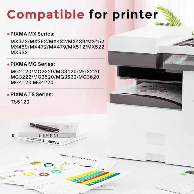 Canon ink 240 compatible with: PIXMA MG3620, MG3600, MG2120, MG2220, MG3120, MG3122, MG3220, MG3222, MG3520, MG3522, MG4120, MG4220, PIXMA TS5120, MX472, MX392, MX432, MX439, MX452, MX459, MX470, MX372, MX479, MX512, MX522, MX532.